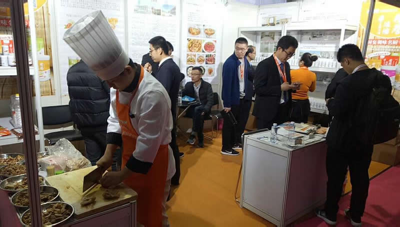 前來(lái)參觀的客戶正在試吃用”隆泰“香精系列制作的鹵制品,都贊不絕口!